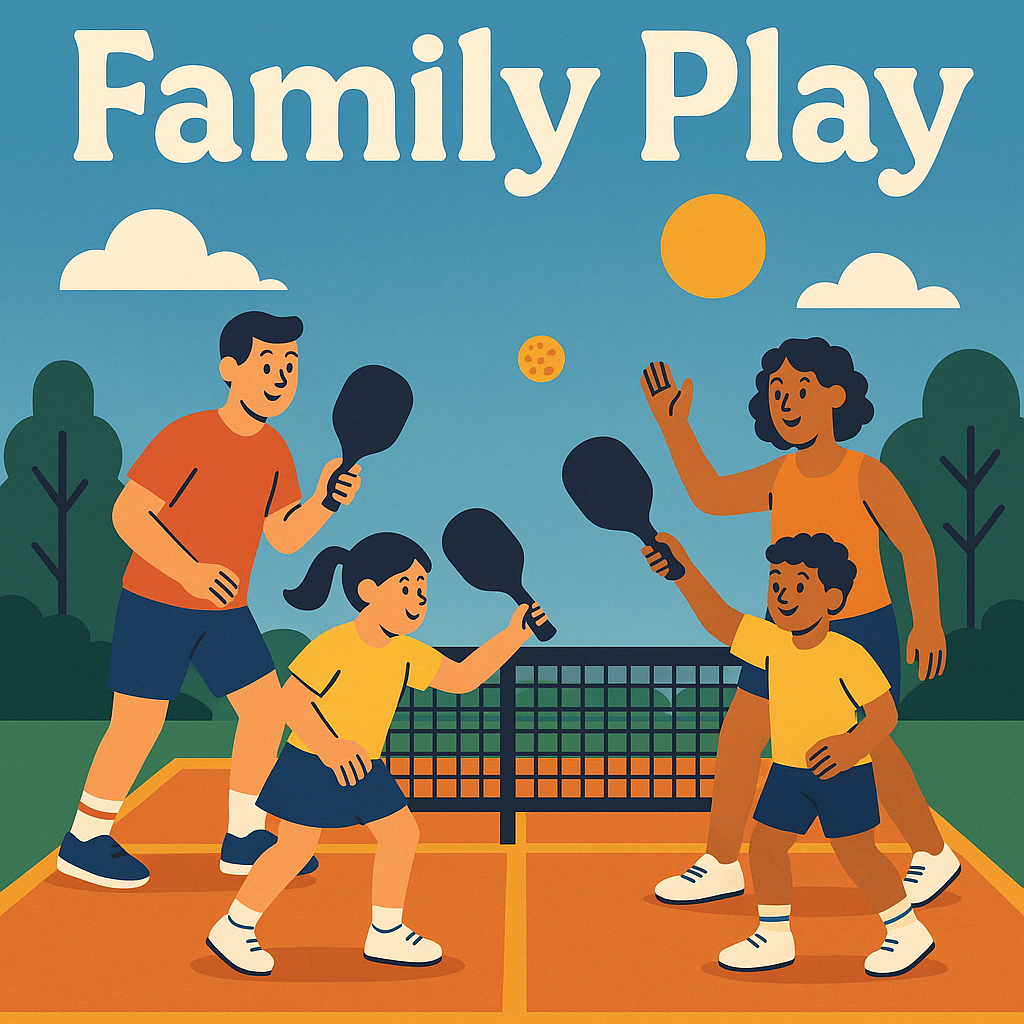 • Families can stick together on their own court or mix around with others playing games, drilling, or hitting around