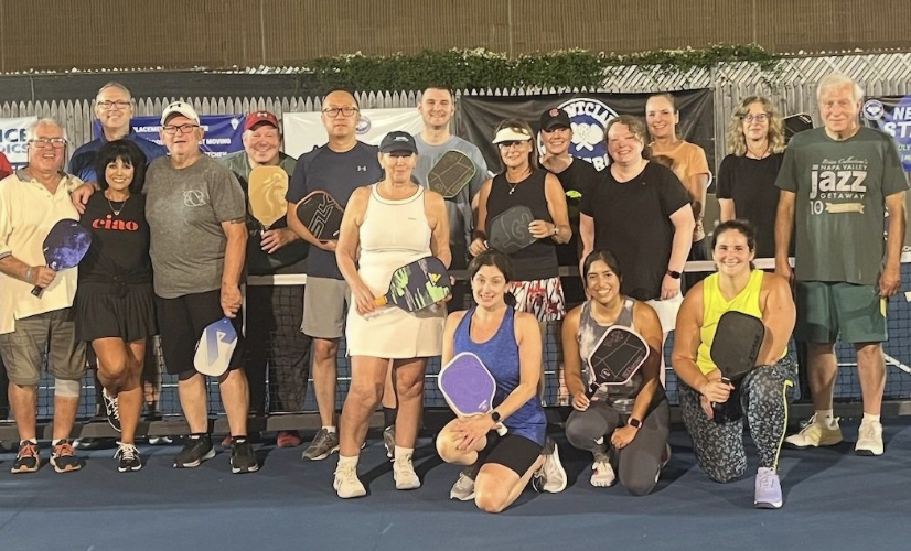 2 hours of pickleball along with food, drinks, and music. All levels of players are welcome. Players will rotate around playing, followed by a post-pickleball “cocktail party”!